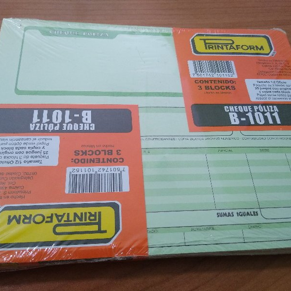 BLOCK POLIZA DE CHEQUE 1/2 CARTA S/C PRINTA 1011